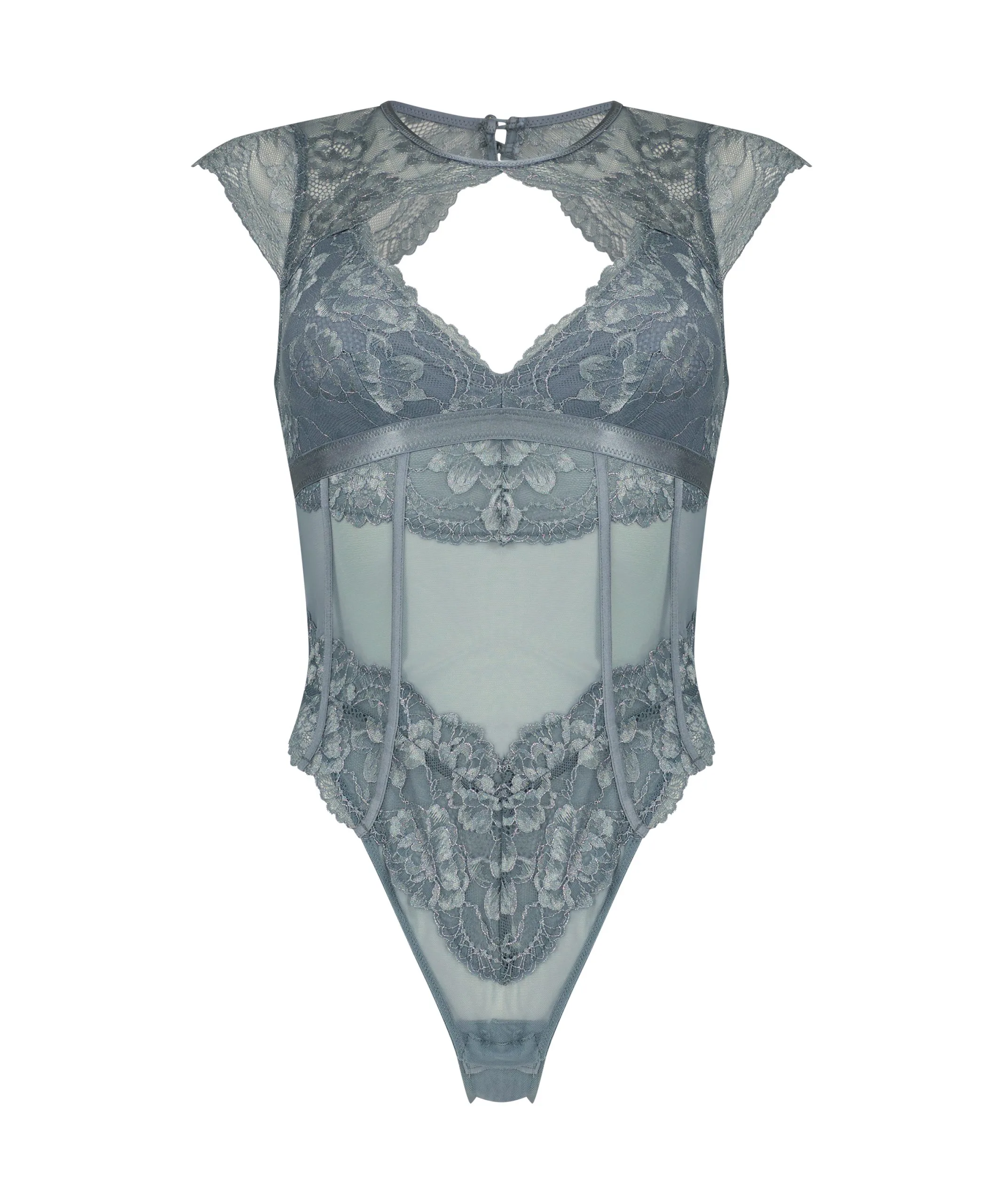 Fühle dich sexy in diesem Bodysuit! Mit romantischer Spitzenoptik und hoch abschließendem Halsausschnitt. Elegant und romantisch, perfekt für jede Gelegenheit, auf die du Lust hast. Kombiniere ihn mit einem Kimono, um ein perfektes Set zusammenzustellen.