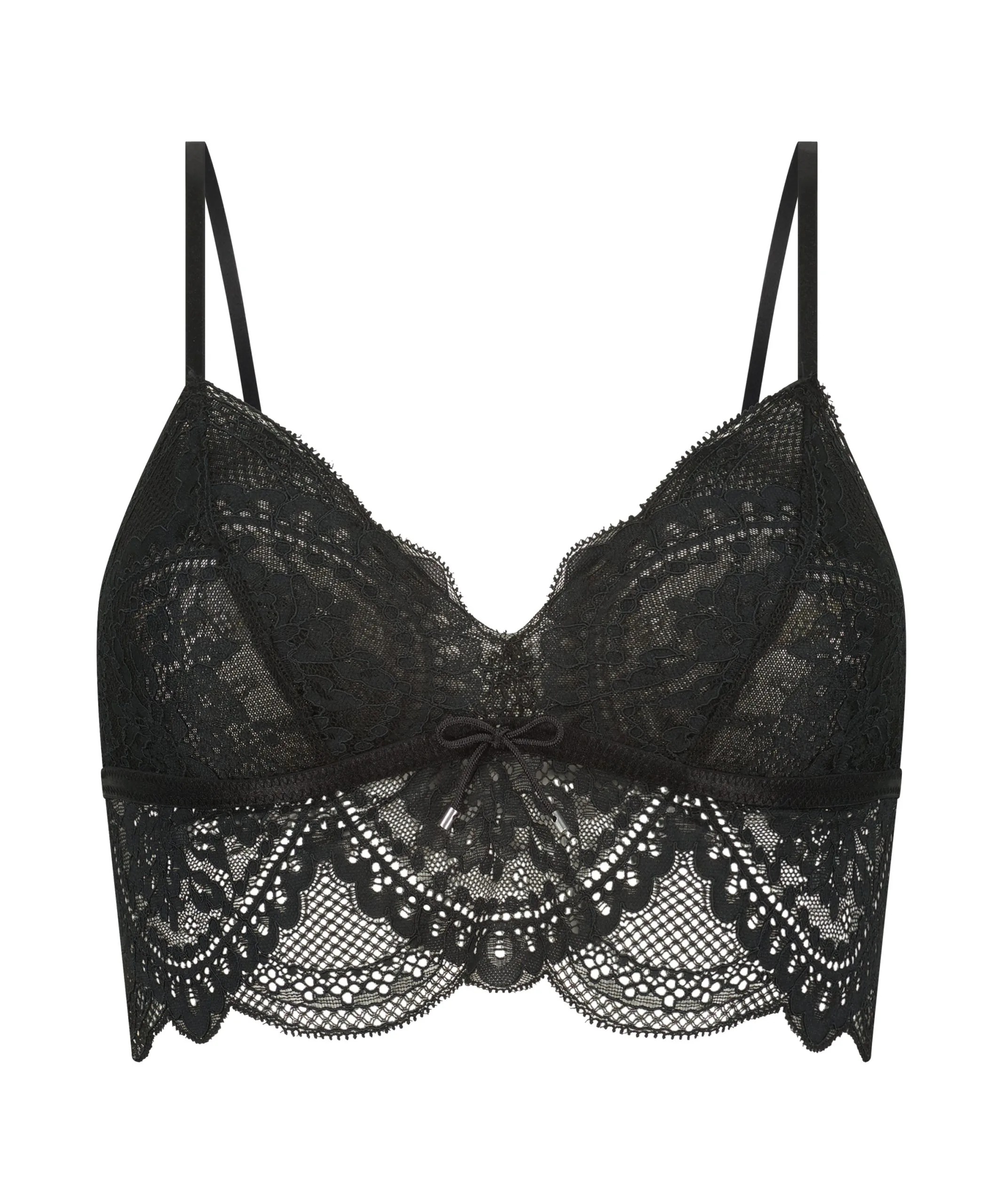 Fühlen Sie sich sehr feminin in diesem hübschen Bralette mit halbtransparenter Spitze und Riemchendetails in der Mitte. Kombinieren Sie es mit den passenden Slips für einen kompletten Look.